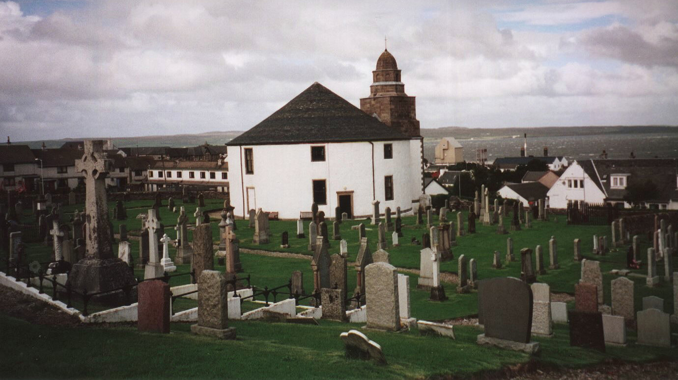 September 2001, is of the Round Church and its cemetery in Bowmore,